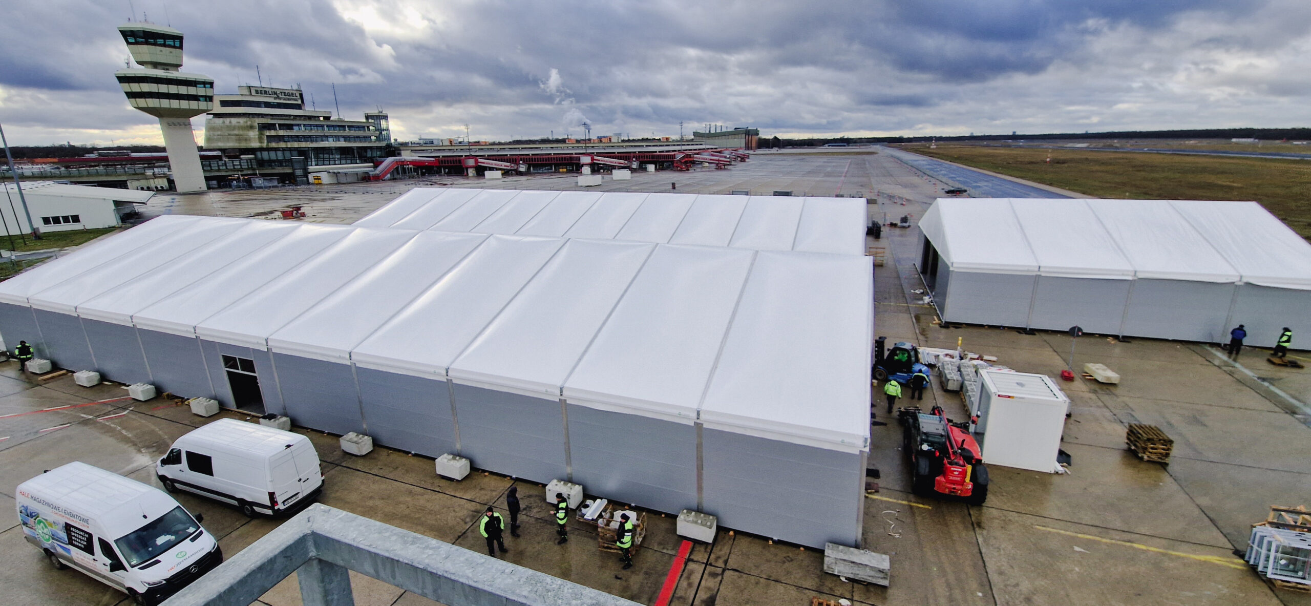 Strona główna » Realizacje » LOTNISKO TEGEL – hala dla uchodźców z Ukrainy – 40 000m2 – czas realizacji 77 dni